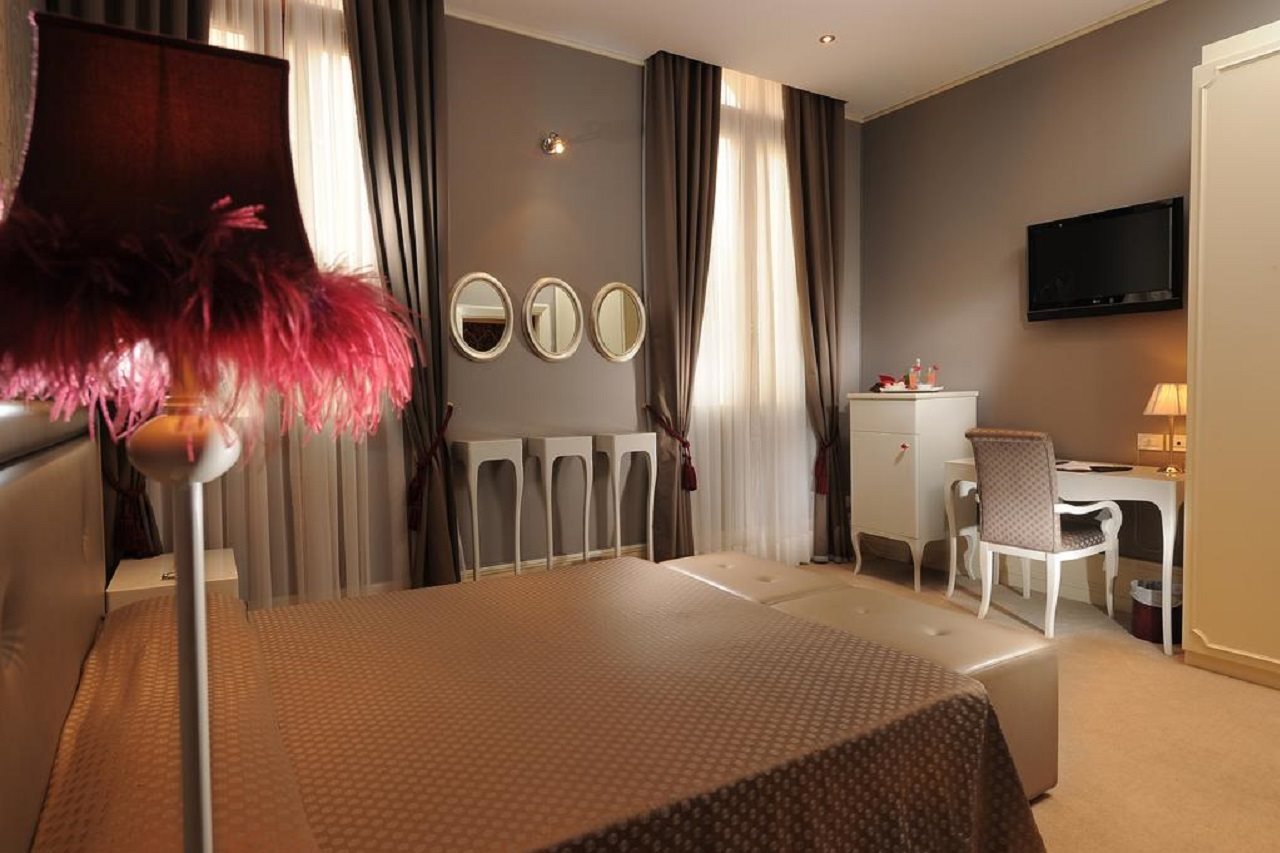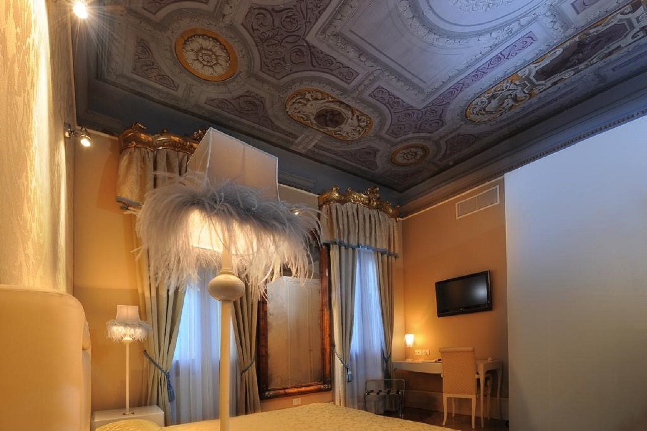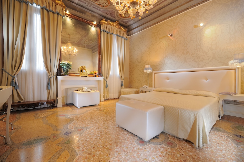 Hotel facilities include a restaurant, bar, wirless internet access in public areas, 24-h reception desk, room service and handicap accessible. The rooms are equipped with bathroom (bath/shower), air conditioning, telephone, Wi-Fi, satellite TV, minibar, safe and fire alarm. Adress: Castello 4971, 30122 Venice, Italy
