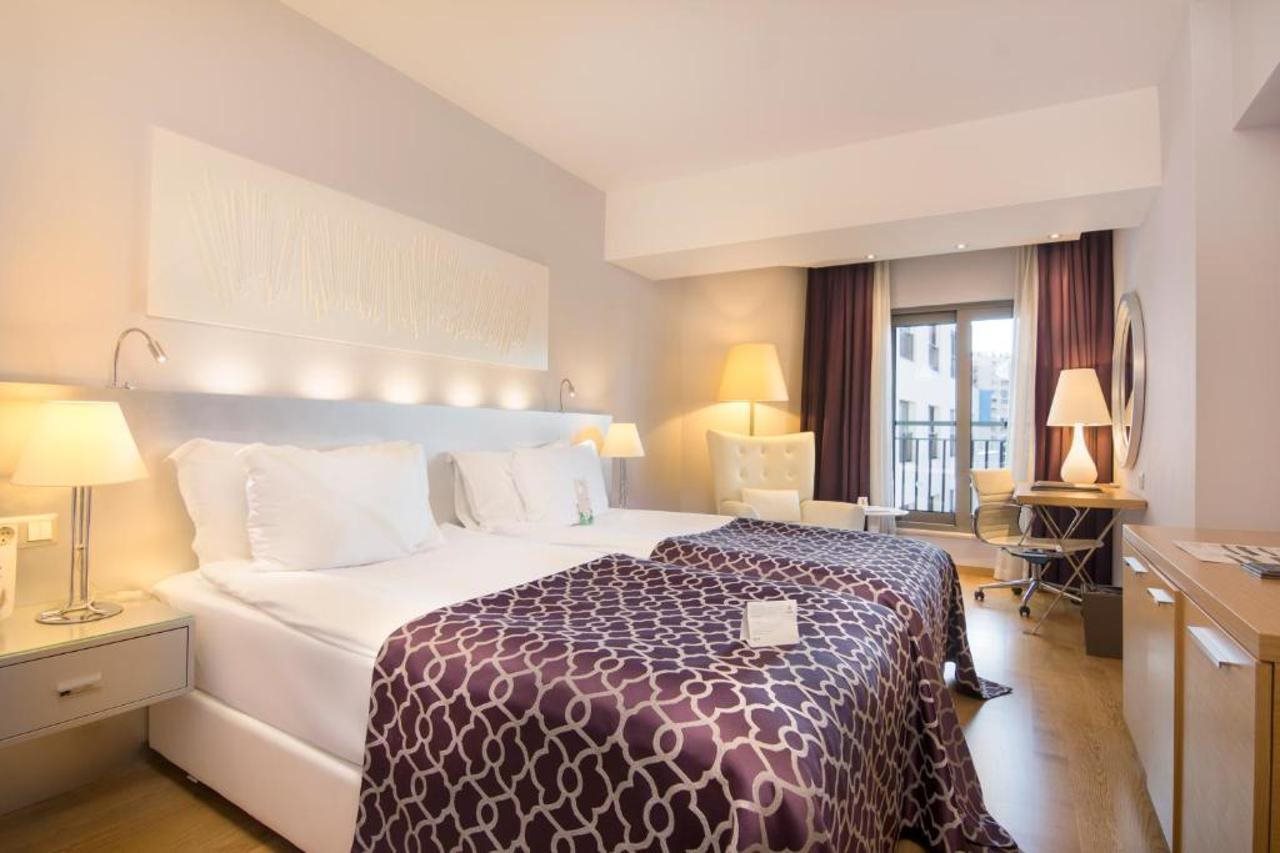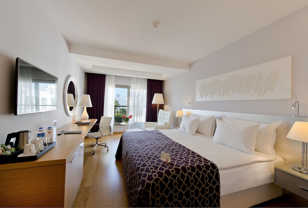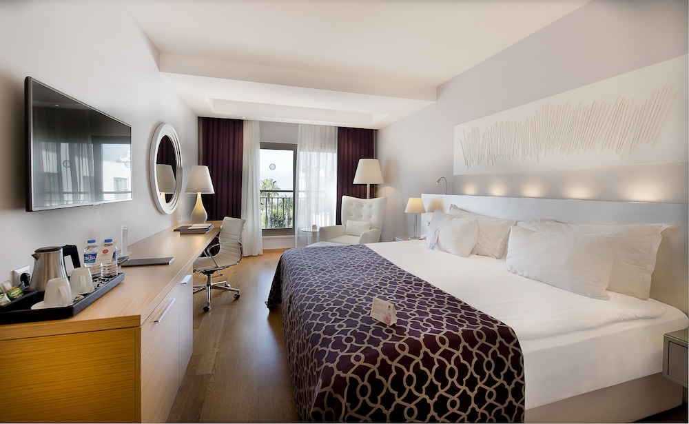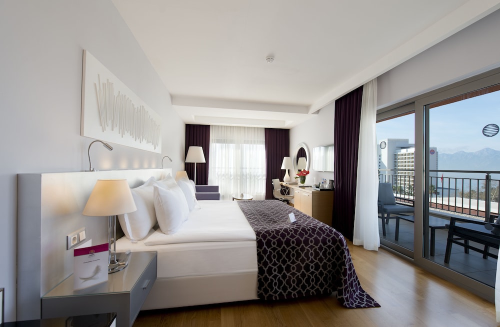 Facilities and services include 24 hour reception, restaurant, bar, swimming pool, kids pool, gym, indoor swimming pool, kids club, library and spa treatments (extra charge). Rooms feature wireless Internet access, central air conditioning, T.V, telephone, kettle, mini bar (extra charge), safe, french balcony, hairdryer and bathroom. Casual Suite Sea View also feature Armchair and Study desk. Please note that some of the above facilities may be closed due to weather / seasonal conditions. Please note that the air conditioning in the rooms is controlled centrally by the hotel, therefore the air conditioning is only turned on during specific hours during the day which may vary. Please note as of July 2, 2024, guests with reservations for Full Board Pension will be served two local alcoholic or non-alcoholic drinks for dinner. Address: Sirinyali Mahallesi Ismet Goksen Caddesi No:21 Muratpasa, 07100 Antalya, Turkey.