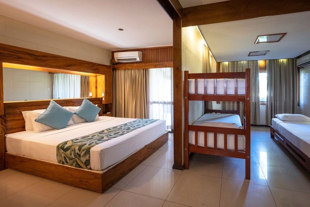 Located in Nadi, Fiji Gateway Hotel is in the suburbs and within the vicinity of Garden of the Sleeping Giant and Sabeto Hot Springs and Mud Pool. This family-friendly hotel is within the vicinity of Sri Siva Subramaniya Temple and Denarau Golf and Racquet Club.Rooms Make yourself at home in one of the 95 air-conditioned rooms featuring refrigerators and LCD televisions. Wireless Internet access (surcharge) keeps you connected, and satellite programming is available for your entertainment. Private bathrooms with showers feature complimentary toiletries and hair dryers. Conveniences include phones, as well as safes and desks.Amenities Dip into one of the 2 outdoor swimming pools or enjoy other recreational amenities including a waterslide and an outdoor tennis court. This hotel also features wireless Internet access (surcharge), concierge services, and babysitting/childcare (surcharge).Dining Enjoy a meal at one of the hotel's dining establishments, which include 2 restaurants and a coffee shop/café. From your room, you can also access 24-hour room service. Relax with your favorite drink at a bar/lounge or a poolside bar. Full breakfasts are available daily for a fee.Business, Other Amenities Featured amenities include a 24-hour business center, dry cleaning/laundry services, and multilingual staff. Planning an event in Nadi? This hotel has facilities measuring 646 square feet (60 square meters), including a meeting room. A roundtrip airport shuttle is complimentary (available 24 hours).